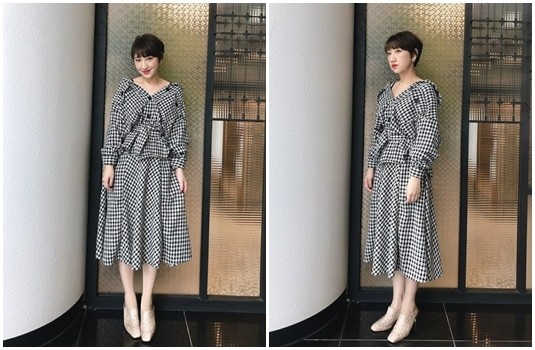 同花紋穿搭絕對不出錯~千鳥格×千鳥格氣場滿分,完全就是時髦的模特穿搭,將裙裝的腰帶改繫在襯衫外套外,讓身形線條更完美~
