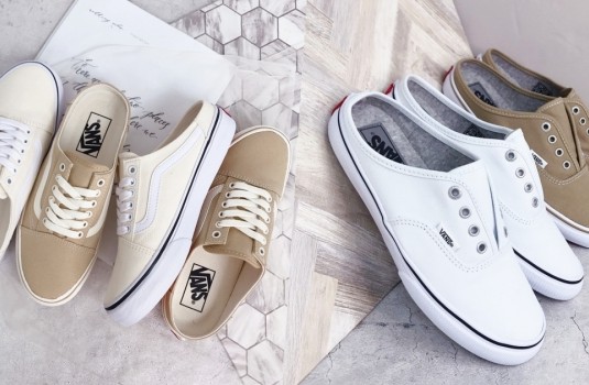 第三款鞋型則是懶人界始祖SLIP ON的MULE進化版!以雪白色調跟黑色相互混搭,讓鞋款呈現帶有個性又不失女子柔和氣質的強勢樣貌,微微厚底的增高鞋型讓腿部比例瞬間提升,對於酷派女孩來說超級適合!