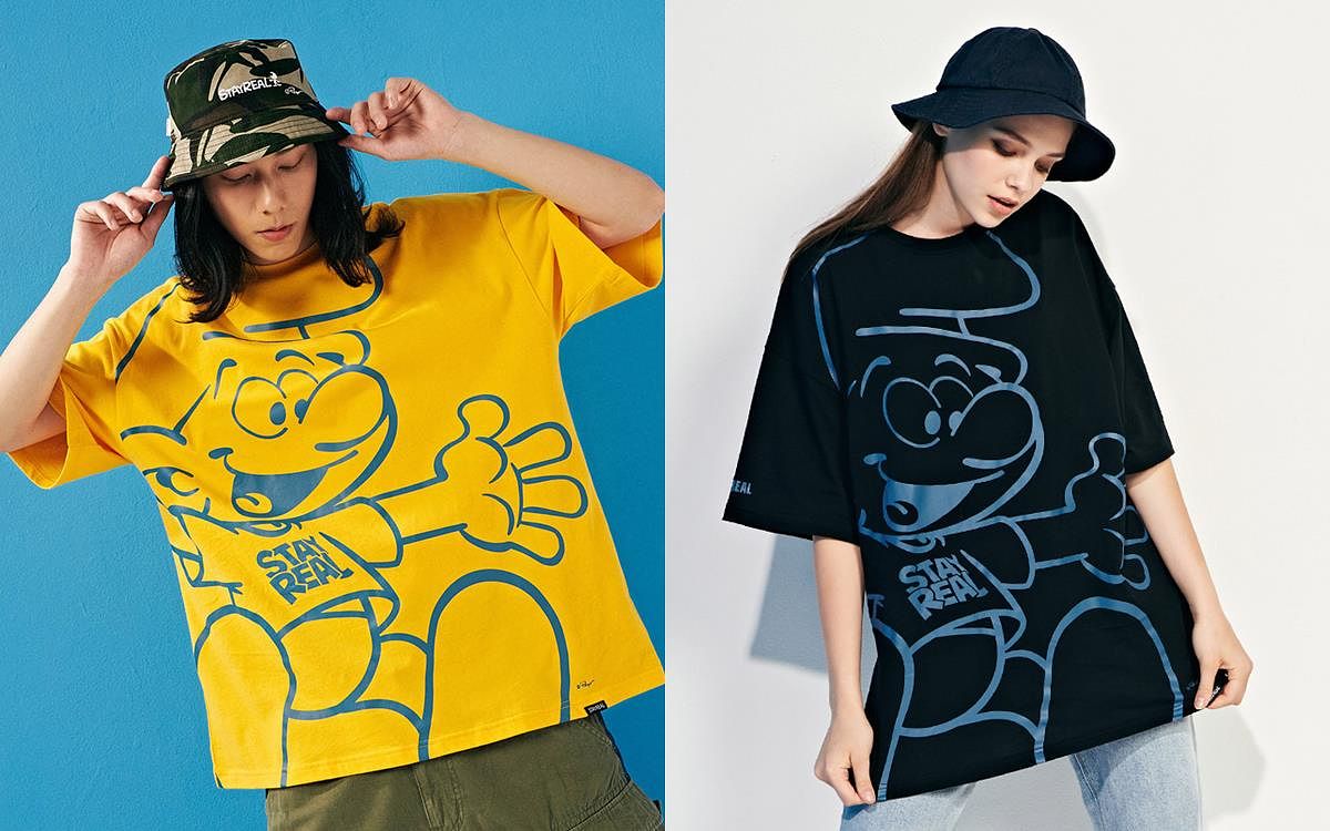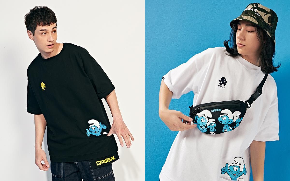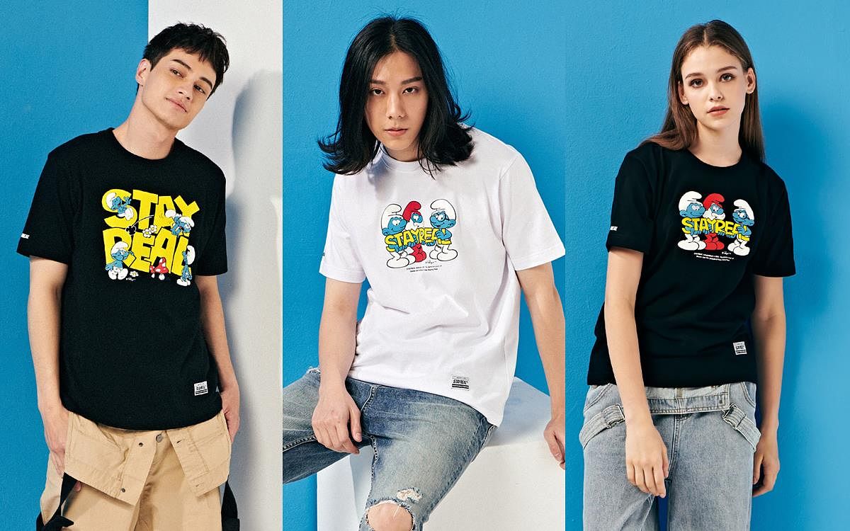 藍色小精靈首度走進STAYREAL的潮流世界!發揮SR最擅長的圖騰創意,捕捉藍色小精靈中的人物特色,並巧妙融入STAYREAL各種品牌Logo,無論動作或神情都很到位,彷彿帶大家進入小精靈的冒險世界中。這回特別運用許多高彩度的T-shirt結合肖像圖騰,讓小精靈的熱鬧與樂天精神無所不在。喜歡街頭穿搭的千萬不能錯過這次的潮流寬版T與Polo衫,低調的小精靈電繡加上極具創意的巧思剪裁,輕鬆發揮穿搭魔力!