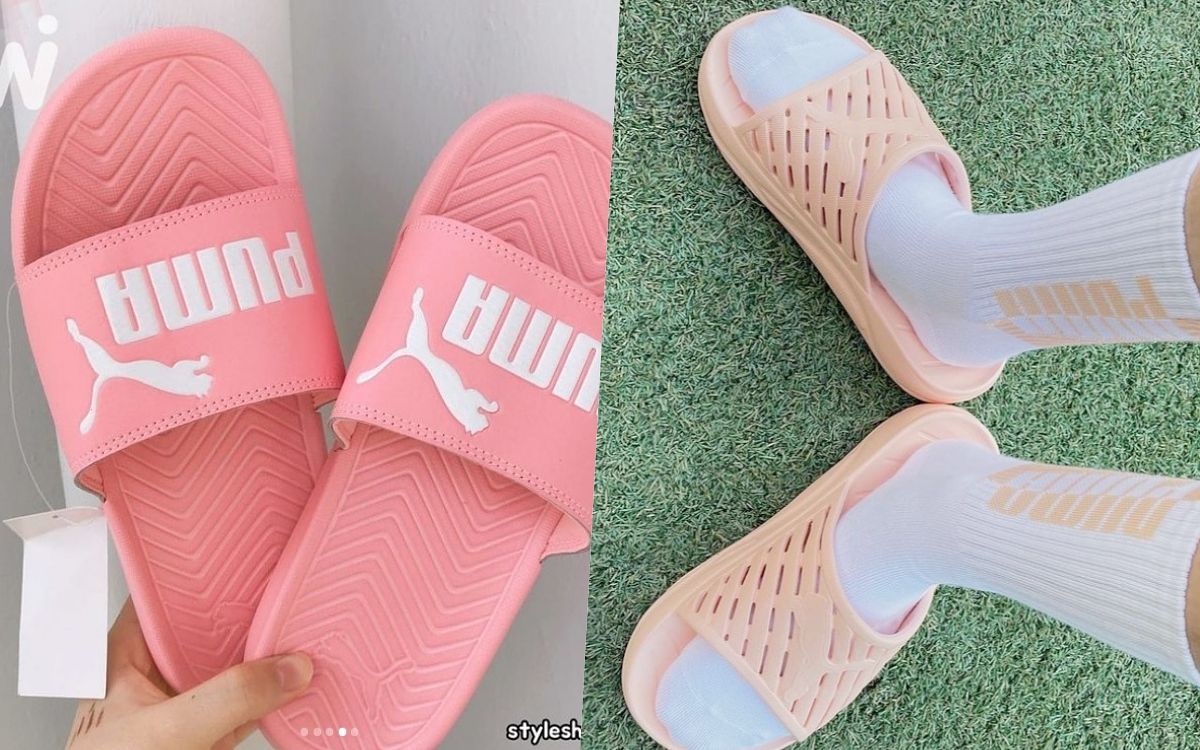 PUMA拖鞋除了色選繽紛、韓國網紅更是人腳一雙,搭配品牌同色調襪款宛如冰淇淋一般的甜嫩質感、在仲夏時分也看起來清爽許多。