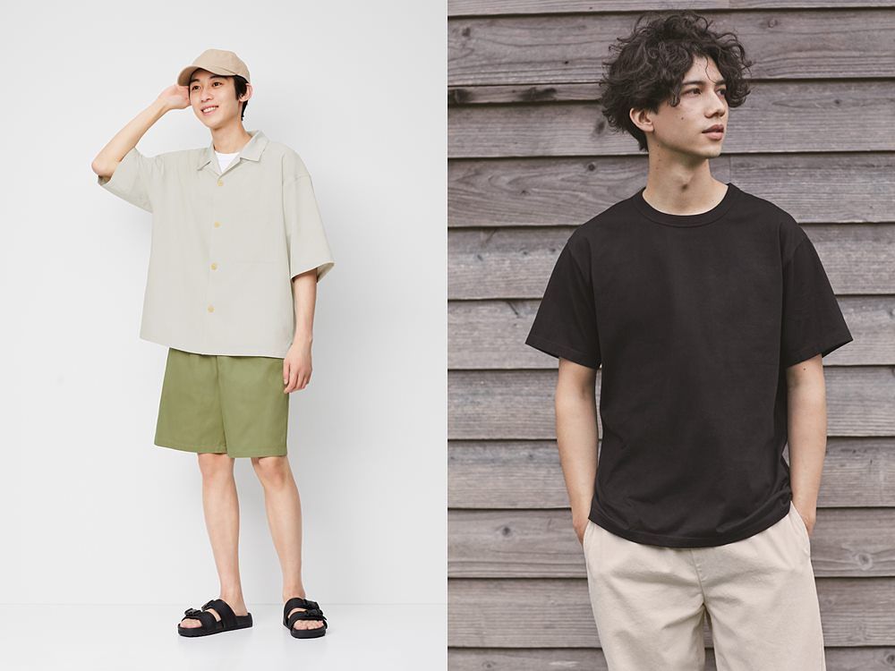 ▲「GU感謝祭」於6/25 (五)~7/1 (四)推出第二彈好康優惠,5分袖的男裝吸濕速乾開領襯衫(圖左)優惠價$690元,男裝STYLE-DRY棉質圓領T恤(圖右)2件合購現折$100元。