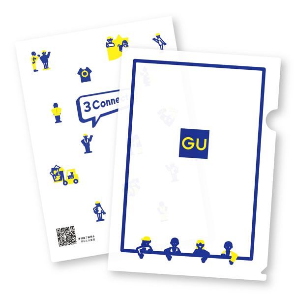 「GU感謝祭」第一彈活動期間(6/18-6/24)於網路商店當日單筆消費不限金額,即贈每日限量「GU 3 Connect資料夾」乙個。