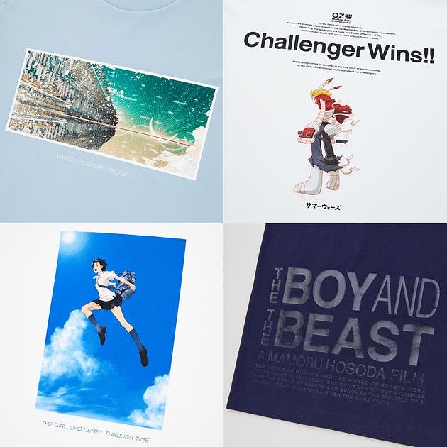 日本知名動畫大師細田守全新聯手UNIQLO合作,精選多部家喻戶曉的動畫作品如《跳躍吧!時空少女》、《夏日大作戰》、《怪物的孩子》以及今年日本最新上映的《龍與雀斑公主》登上本次MAMORU HOSODA UT系列。作品中所隱含的寓意與主角們勇往直前突破困境的態度,都讓大師的動畫成為值得細細品嘗的佳作,細膩的畫風也反映在本次圖騰設計上,是動畫迷不可錯過,值得收藏的UT系列!