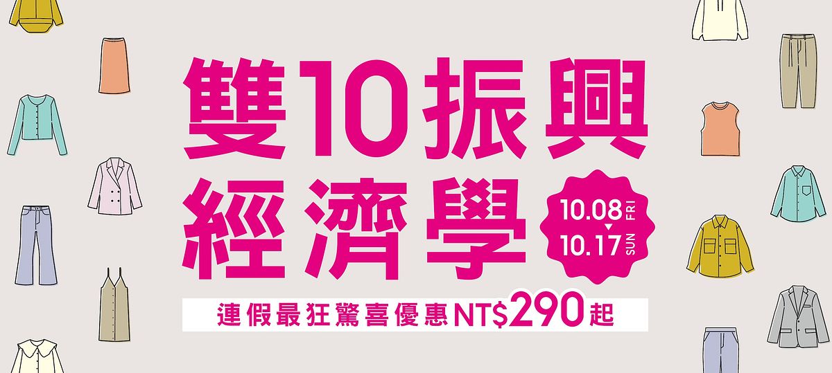 ▲GU於10月8日至10月17日推出「雙10振興經濟學」,多款秋冬單品限時振興價$290元起。
