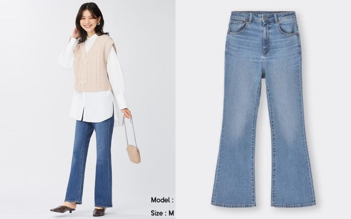 GU的丹寧褲最令人喜愛的優點就是能針對嬌小的東方身形做設計,每年都會因應消費者要求做出版型上的調整,像是這款丹寧褲就打造出高腰及較高的膝蓋位置為,達到腿長修飾效果!
