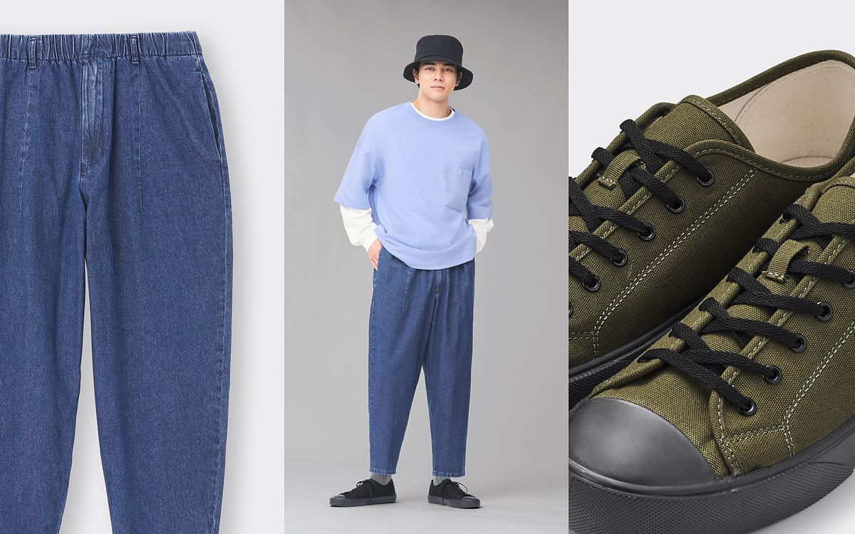 ▲「男裝帆布運動鞋」具有好穿脫、防潑水和防臭的三大優點,搭配「牛仔氣球九分褲(2/4-2/6虎年開運限定價$690元)」等GU經典褲裝即可輕鬆打造潮流感十足的走春造型。