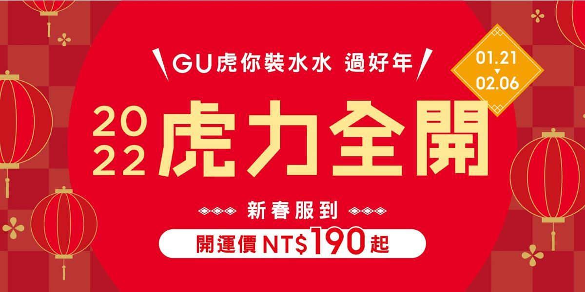 2022年1月18日,台北-農曆新年即將到來,在與家人團圓的重要時刻,日本流行時尚服飾品牌GU將在1月21日至2月6日舉辦「GU 2022虎力全開」新春優惠活動,精選多款質感百搭的男、女、童裝商品,推出$190元起的超值優惠,讓所有人從衣著開始煥然一新,在新年的每一天都能增添「虎」力與好運!秉持「For All」理念,GU推薦適合全家大小、小資男女等不同族群的「虎年開運時尚秘笈」,讓所有人今年都有個「虎虎生風」的好開始。同時,GU更推出驚喜好康「開運滿點四步驟」,凡於指定活動期間至GU實體店舖或網路商店消費,即有機會得到GU攜手插畫家ericoco所設計的「虎年開運紅包袋」及「虎年好運啤酒對杯」,更有「myVideo 7天電子序號」,為闔家歡聚的年節時光增添更多氣氛;活動期間於網路商店下單,即可享有店取免運優惠,單筆消費滿額再享專屬優惠券。即將迎接新年,GU以「價格美學」讓所有人都能更加輕鬆地添購時尚新裝,一起在虎年裝水水,得到新春好「服」氣!