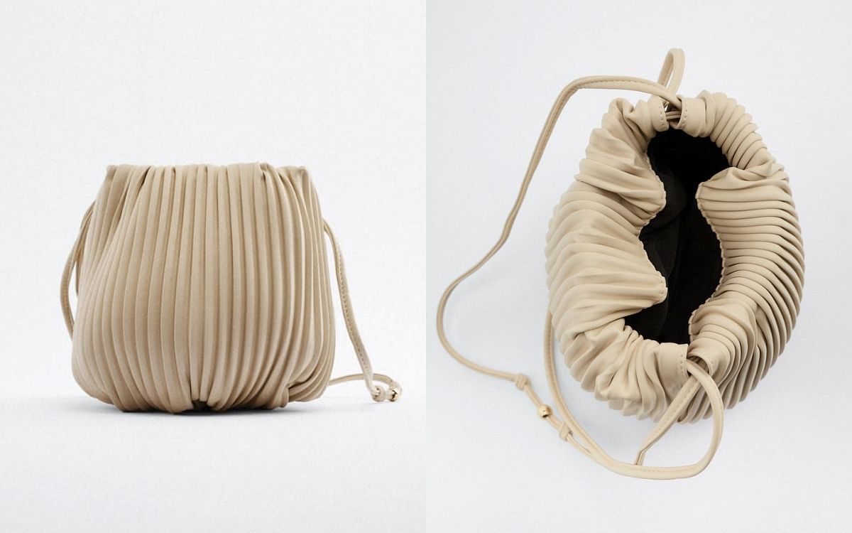 去年爆紅的ZARA百褶包,今年又推出新款囉,以細褶效果打造而成的水桶包,遠看形狀像極了一顆可愛的蛋,搭配細緻的揹帶上身營造出修長比例!