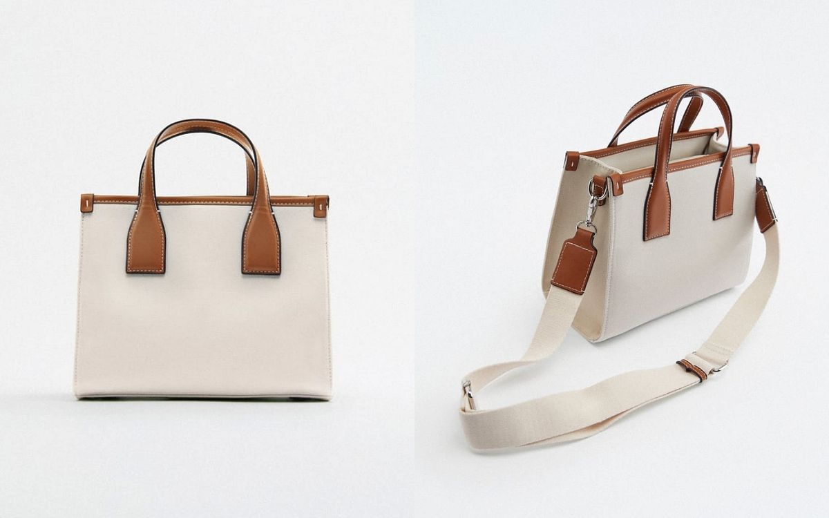 大容量托特包是通勤上班族及學生族的最愛,在ZARA從百元到一千初就能入手,這款新款帆布托特包還附上可拆式的寬揹帶,增加造型感之餘也更舒適呢!