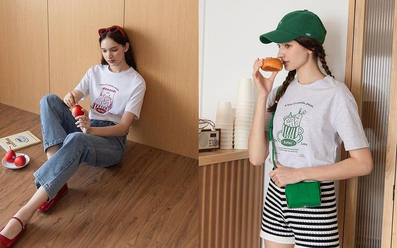 BUTTER奶油樂園印花TEE:白/淺灰/米杏/蜜瓜橙 共四色,S M L