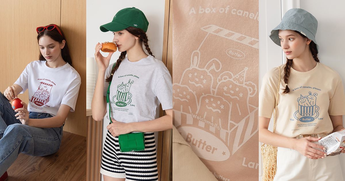 奶油村民們每月最期待的就是當月主題角色TEE,迎來充滿朝氣的夏日,這次推出的「奶油樂園系列Tee」色系上更顯可愛俏皮!「BUTTER奶油樂園印花TEE」以低調亮色系開展夏日氛圍,樂園圖案設計共有兩款,一款是裝著滿滿可露露的紙盒、另一款則是裝著可露露的咖啡杯,可露露頭上綴以遊樂園頭飾,簡直可愛爆擊!