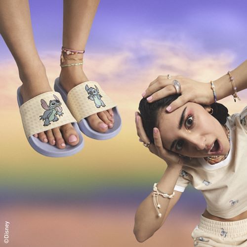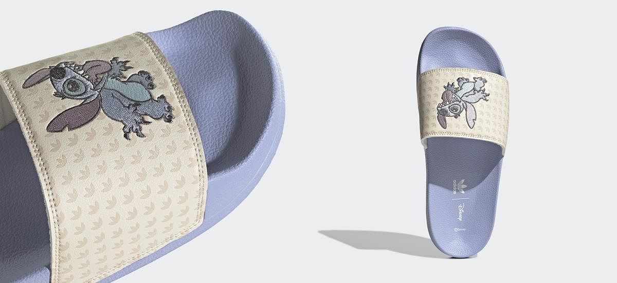 鞋款部分,本系列將品牌最具代表性的SUPERSTAR、FORUM、ADILETTE鞋款染上童趣玩味風格,除了代表著史迪奇的藍色之外,三雙鞋款更分別運用了沙灘米、湖水綠、夢幻紫等繽紛亮眼色調。其中,SUPERSTAR與FORUM在延續經典輪廓的基礎上,採用皮革鞋面,史迪奇以不同動作與搞怪本色出現在鞋身與鞋舌等細節,可愛吸睛又適合日常穿搭。而ADILETTE主打舒適與輕鬆風格,更將全印花的三葉草標誌與史迪奇完美融合,穿上就能一起跳進史迪奇的世界,展開夏日奇幻冒險。
