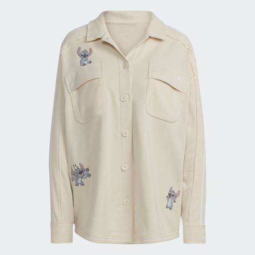 史迪奇的頑皮形象同樣還出現在採用柔軟的毛圈材質打造的襯衫外套、開襟外套與短褲上,與三葉草印花巧妙融合。三款單品均以柔和沙灘米色為主,仿佛夏日陽光般溫暖,藍色的史迪奇正好點亮了整體感,搭配經典三條紋滾邊更顯玩味街頭態度。