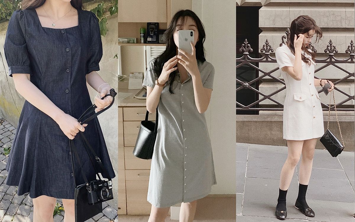 夏天洋裝穿搭圖鑑6.排釦短洋裝