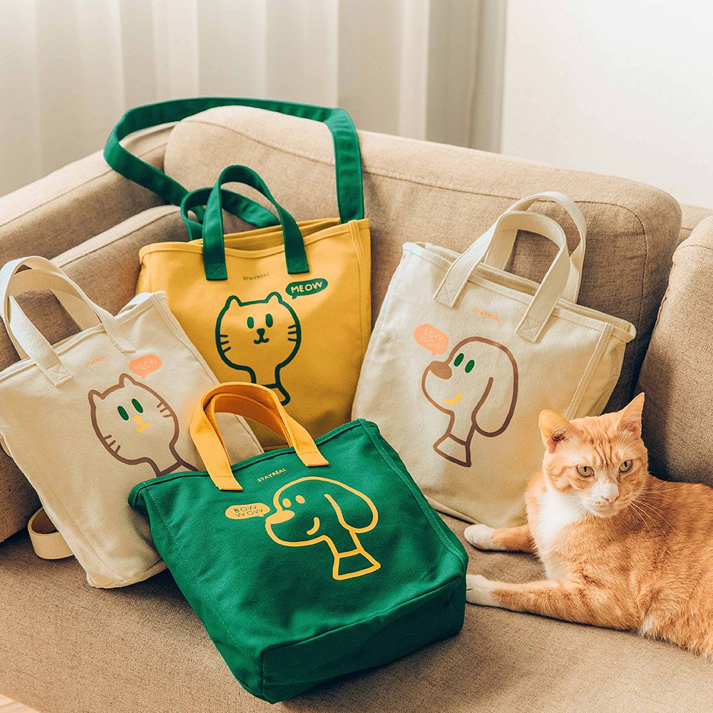 呆萌貓貓陪你開心過生活!繽紛亮眼的帆布包耐髒耐磨,好揹又耐用,輕鬆包裹生活必需的大小物品,一起跟毛寶貝出遊散步!