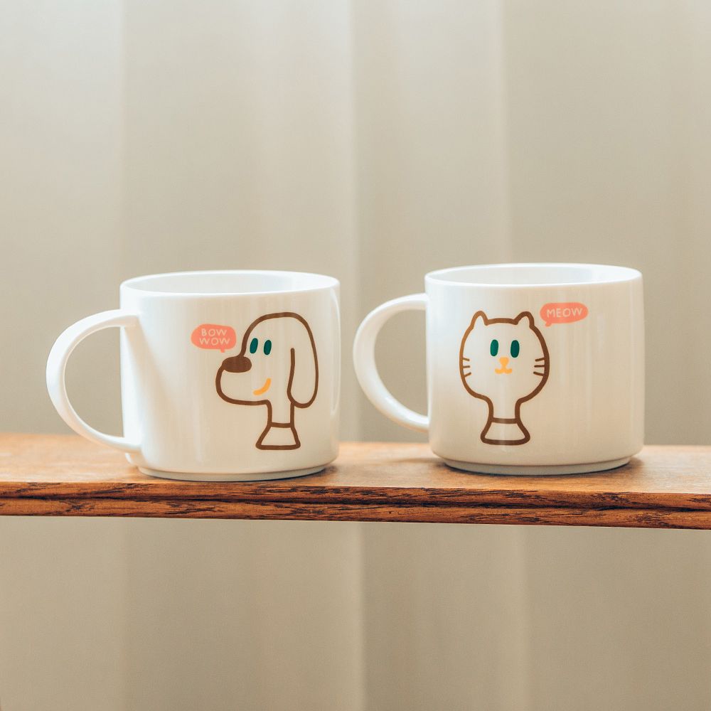 無稜角的寬口設計方便啜飲,手把圓潤持握手感佳,搭配淘氣狗與呆萌貓的可愛圖案,俏皮的手寫字體,讓喝水時也有不同的享受,陪你度過輕鬆愜意的美好時光。