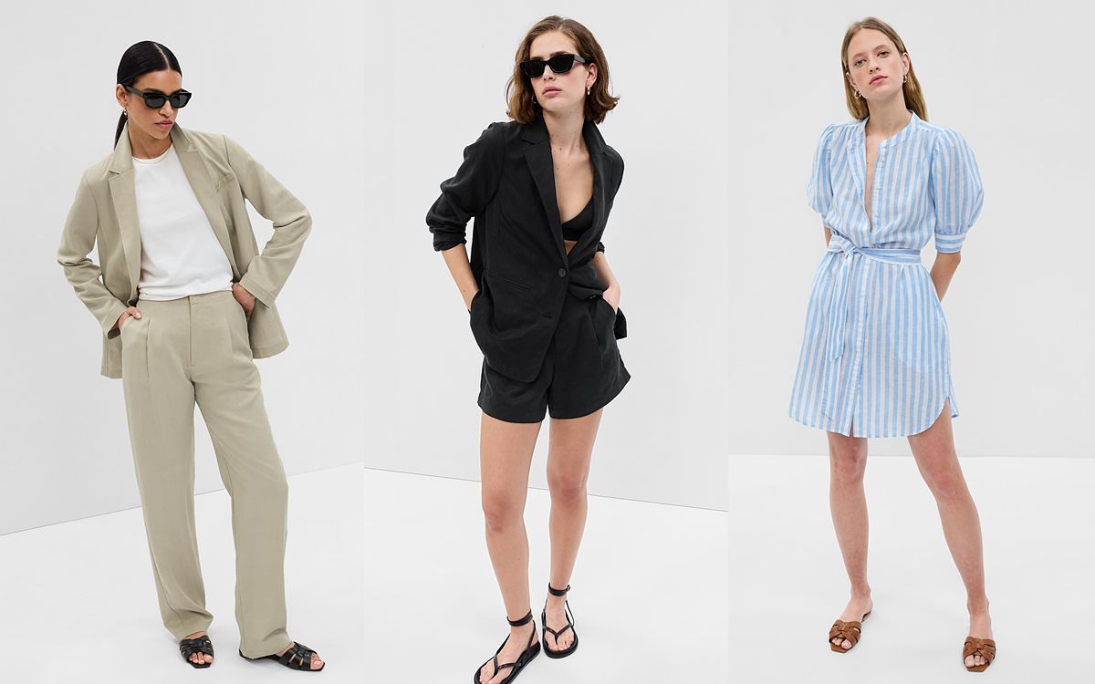 除了富有藝術氣息的花朵系列以及的人見人愛的女友T外,Gap本季也推出多款女性必備的知性單品,包含襯衫、西裝外套、西裝褲等,且提供百搭的黑白色系以及朝氣滿滿的多彩條紋款式,更可透過短版或是腰部綁帶等設計細節,輕鬆調節身形比例。上班穿能給人精明幹練的印象,下班穿也能展現氣質、知性的時尚態度。