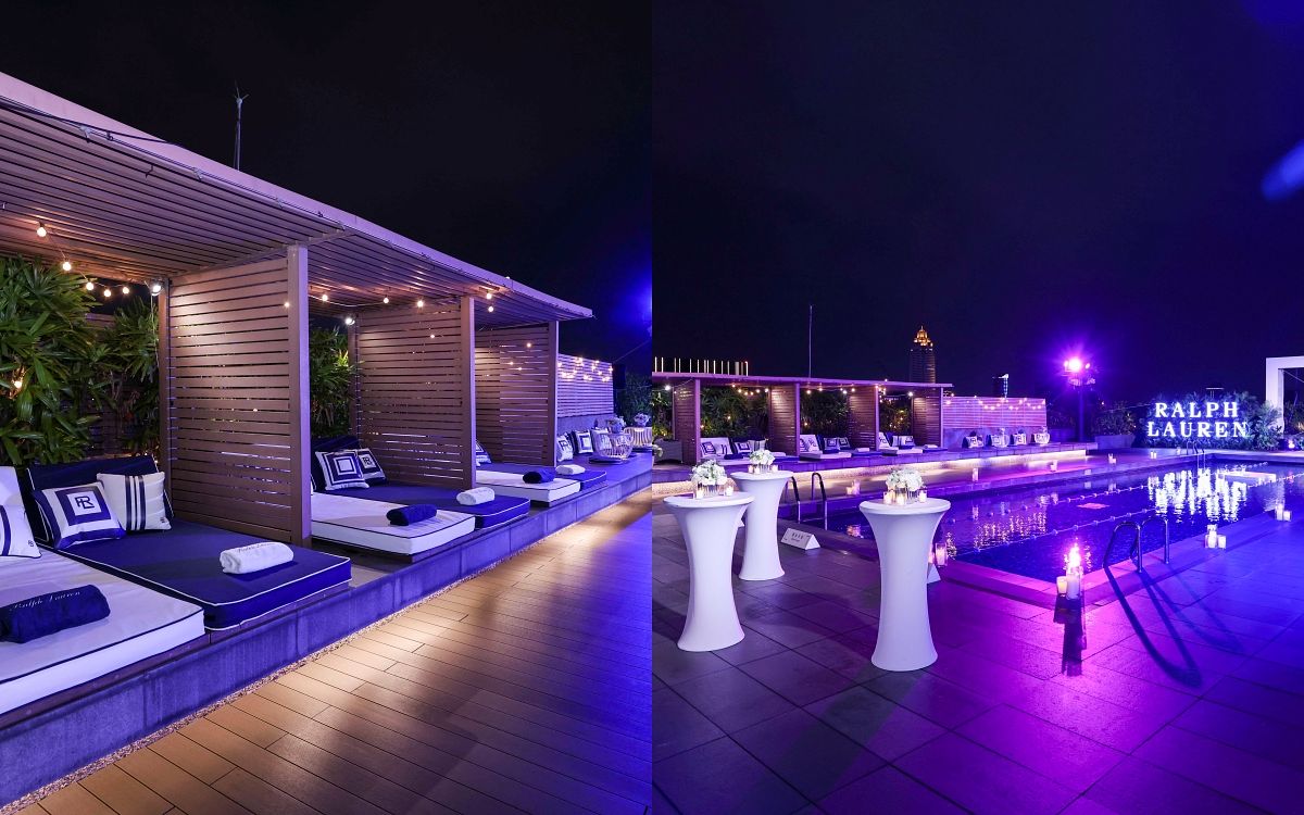 加州悠閒奢華生活絕對少不了豪宅泳池派對,Ralph Lauren特別以全新推出的RL Logo布置晶華飯店泳池,搭配Ralph Lauren經典海軍藍與白色,以及大量的綠色大葉植栽,打造出充滿加州明快熱情的豪宅池畔氛圍。充滿年輕活力的RL Logo躍然於遮陽傘、躺椅,以及藤椅抱枕與浴巾等,體現Ralph Lauren追求美好生活的精神。藝人姚淳耀、黃河、范少勳、王真琳特別現身鑑賞會開幕派對,與賓客們同歡。范少勳更首度嘗試與DJ Ken合作打碟,嶄露戲劇、主持之外的才華,為派對帶來第一波高潮,也賓客們留下難以忘懷的奢華一夜回憶。