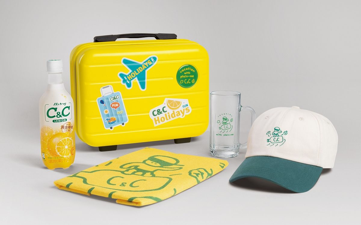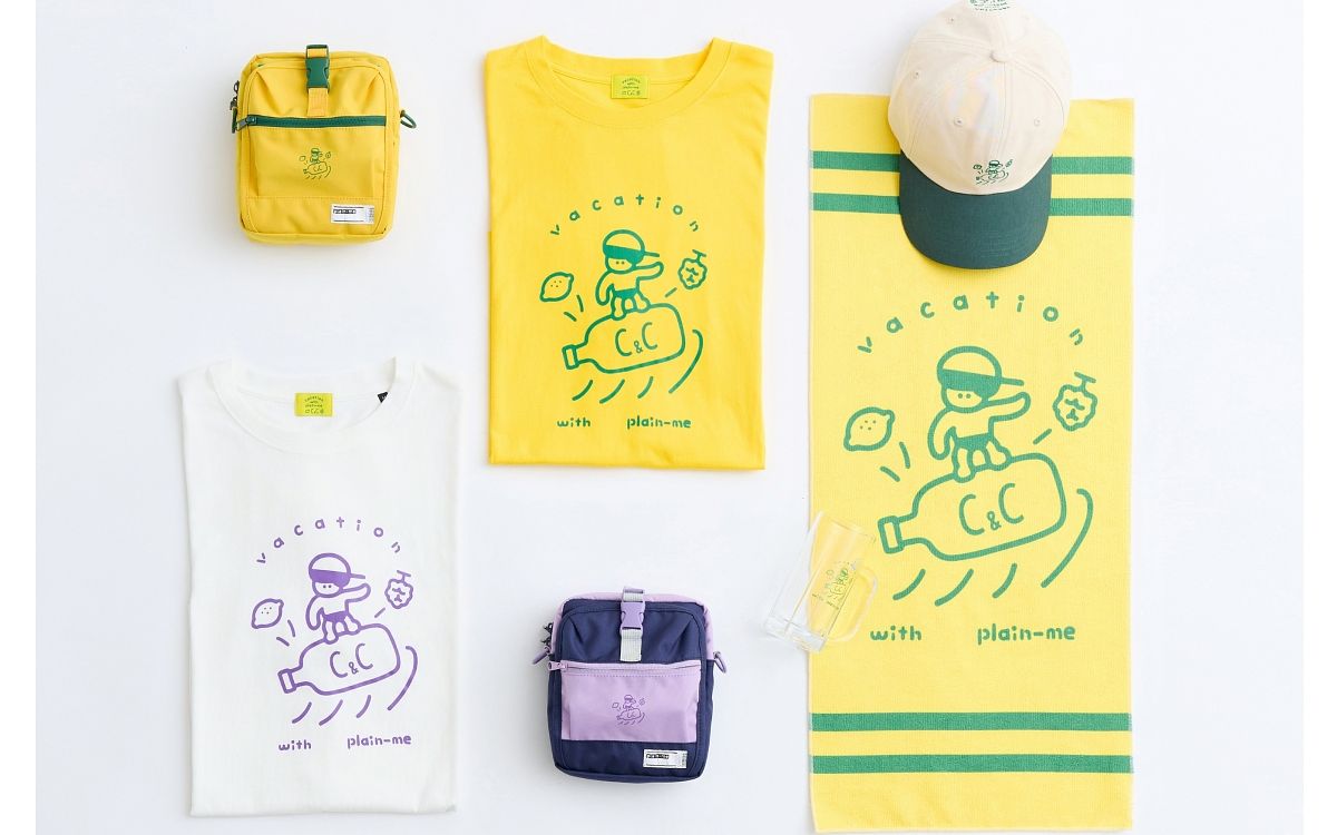 圖片來源:C&CC&C氣泡飲添加果汁及維他命C,能夠滿足消費者一日所需活力,更是夏日消暑不可或缺的良伴,首次與plain-me聯名,希望為夏季消暑帶來新解方!運用描繪夏日旅行意象的「Vacation C&C with plain-me」專屬手繪插圖,融入到多款商品中,無論是以C&C經典的檸檬、葡萄口味推出的黃色、紫色元素的限定短TEE及PM旅行小包,還是刺繡短褲、拼色老帽、玻璃手拿杯及超細纖維毛巾,每一款商品從材質到色彩都帶來清新的舒適體驗,炎夏假期就跟著C&C和plain-me一起解放夏日的黏膩不適!