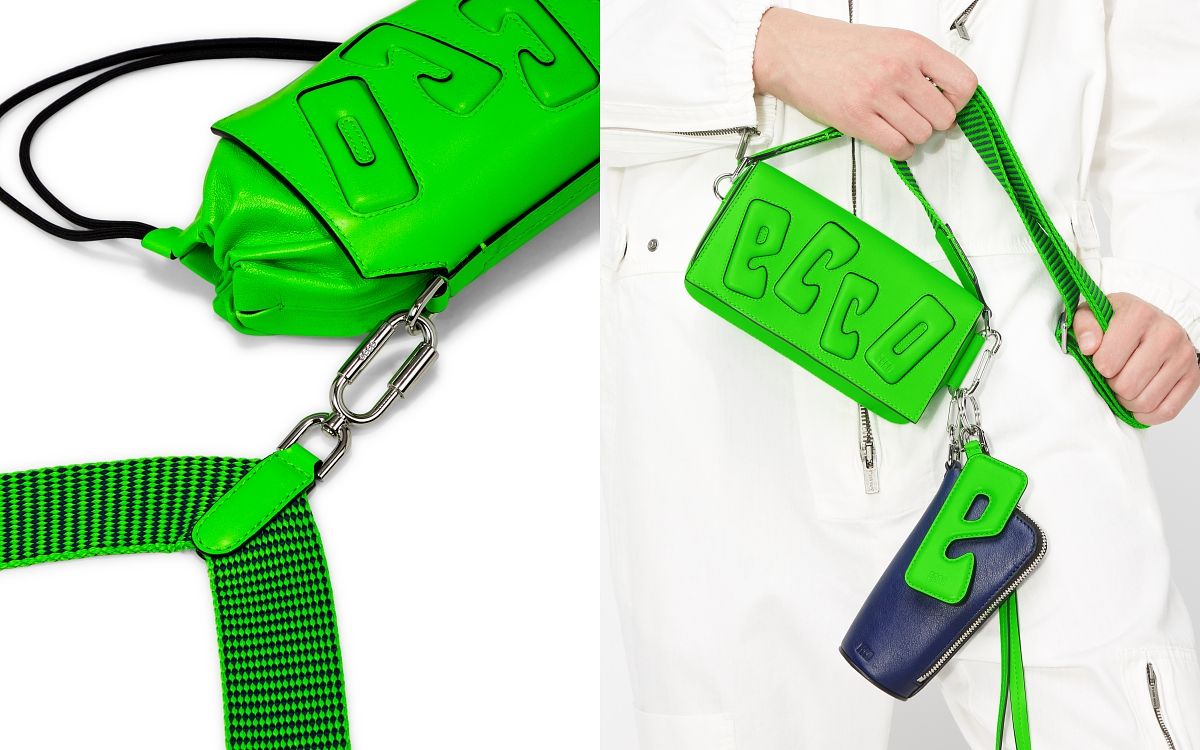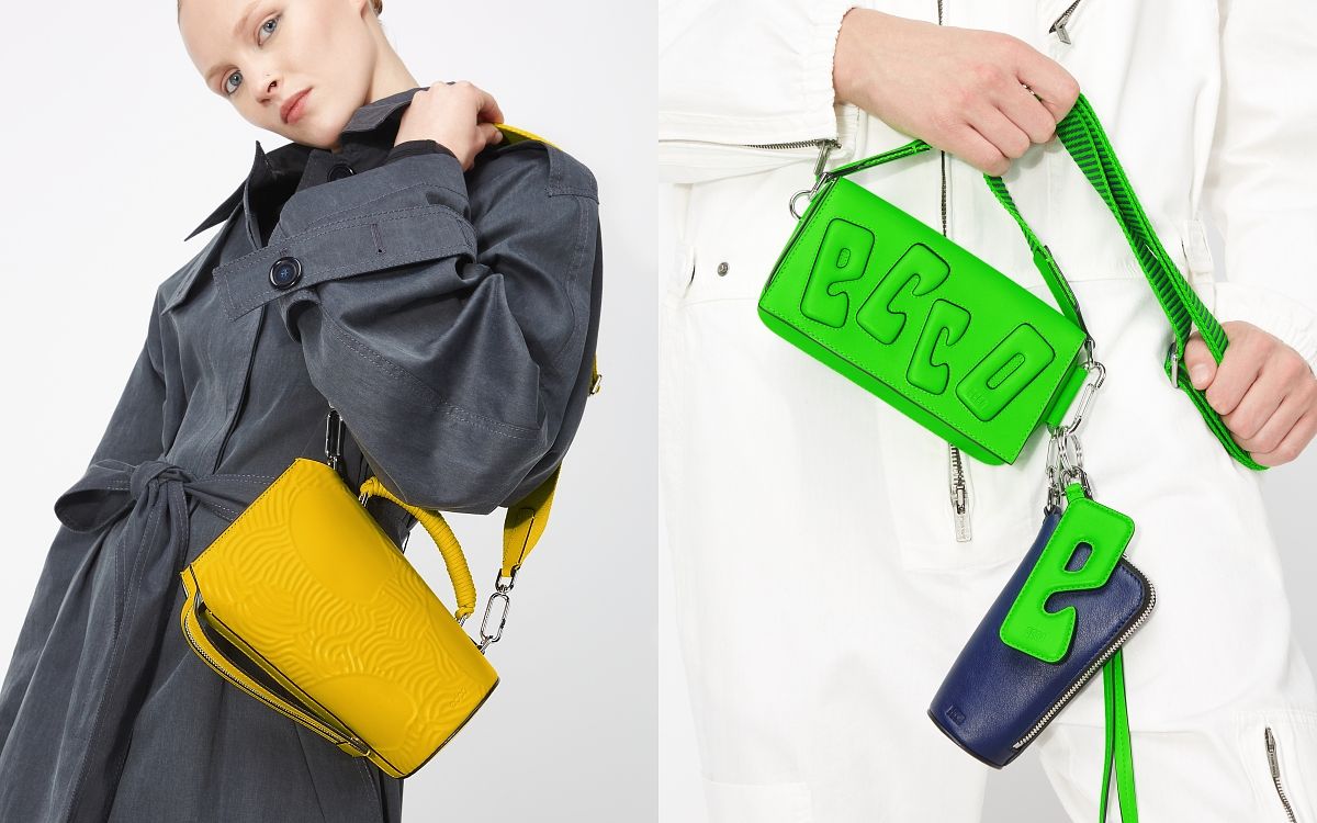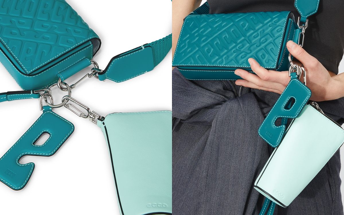 同時身為全球最大皮革供應商的ECCO在皮革工藝不僅展現在鞋履上,更將頂級製鞋工藝延伸至包款配件上。高超的鞣革技術,使皮革也能像布料一樣展現明亮濃烈的色彩,像是光譜黃、蘋果綠、土耳其藍及寶藍色等包款,都是能點亮秋冬暗色系穿搭的絕佳單品。除了顏色之外,藉由烙印工法使皮革呈現多樣圖騰,也是簡約又別具細節的設計巧思。