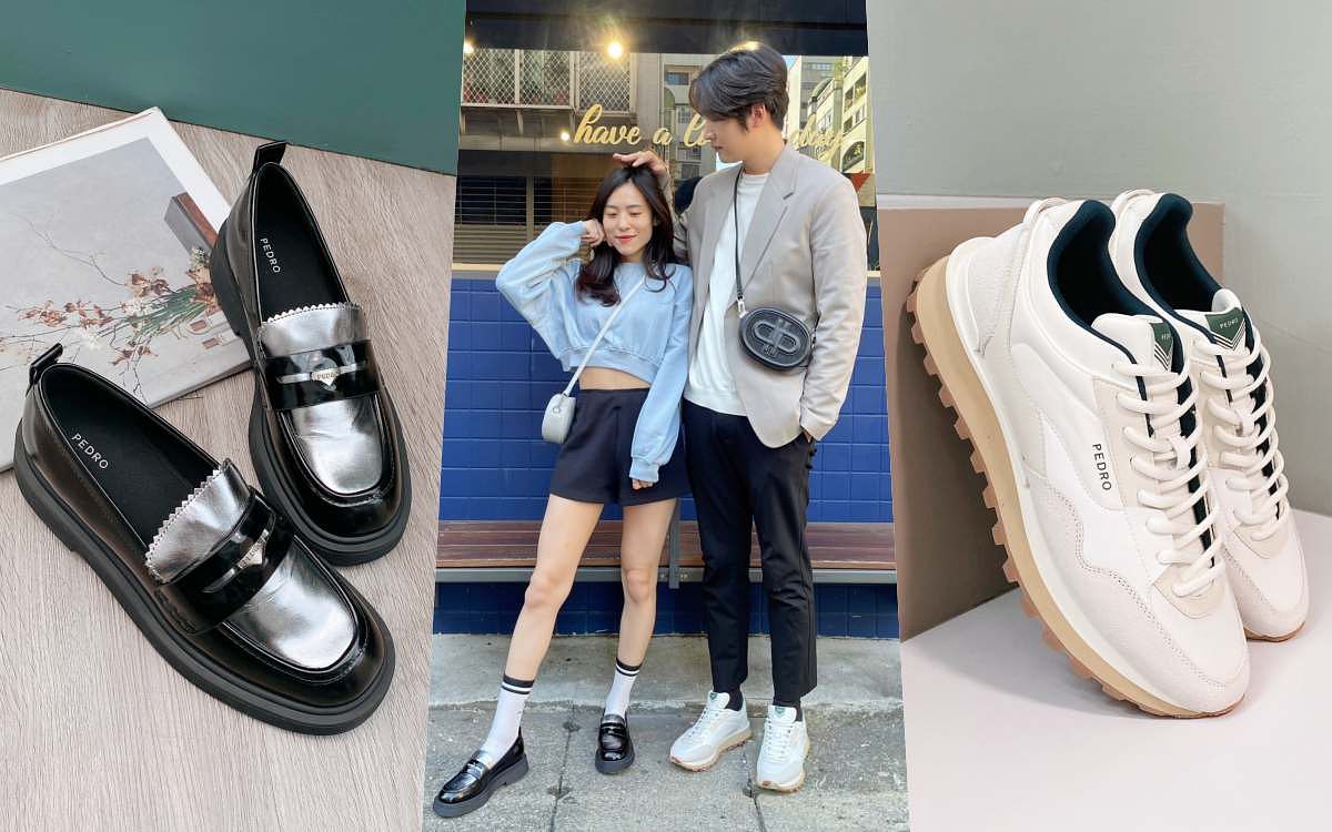 而在情侶穿搭上今年特別推薦大家跳脫款式、色系的配合,抓準風格的呈現才是更高級且不受限的搭法,男生的這款休閒鞋在看似一般白鞋的外觀下蘊藏著細膩的面料拼接與結構紋理變化,縈繞出豐富的層次感與活力,無論休閒或正式都能零失誤搭配,且整體雅痞的城市印象更與女生的樂福鞋微妙的 Match,這樣用風格穿搭出情侶氛圍的小技巧更適合現代年輕潮流的節慶穿著巧思。