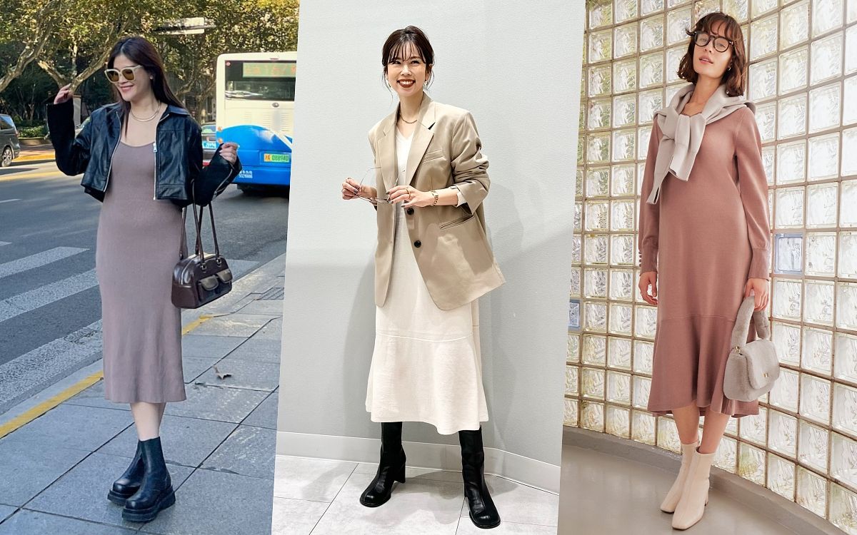 針織洋裝也絕對是冬季年末穿搭的熱門搭配選擇,保暖親膚的針織不怕溫度驟變的天氣,搭配不一樣的外套單品或配件就能呈現不同視覺風格,建議挑選裙襬魚尾或傘狀的款式會更顯瘦、好駕馭喔!