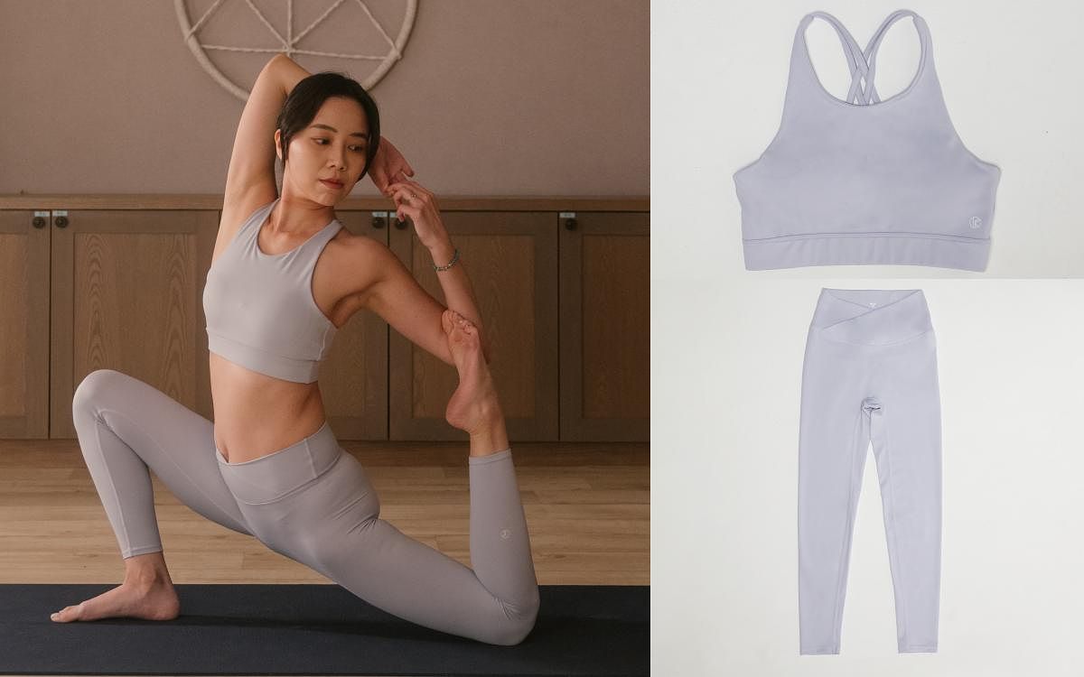 圖片來源:VERVE主打瑜伽服裝從Bra、後弧背心、Leggeing皆選用LuxoTM布料,以其觸感輕盈舒適、恰到好處的包覆感與高彈力延展機能打造,適合在皮拉提斯或瑜伽等運動中使用。細節設計上將Bra及後弧背心的領圍提高,在瑜伽前後彎、扭轉動作時免於曝光危機;Bra將袖圈挖深避免副乳跑出,後背雙肩帶交叉設計則減少肩胛束縛感,於大幅度伸展時仍能怡然自得;Legging將腰頭反摺無剪接增加貼膚性同時收腰內肉,長度設計9.5分符合各種身形腿型的需求,搭配臀部抓皺的設計展現提臀小心機。LuxoTM布料絲滑帶霧面的光澤不但襯托出高質感,搭配冰島紫與寧靜藍等柔和色系更增添其沈穩隱晦的設計風格。