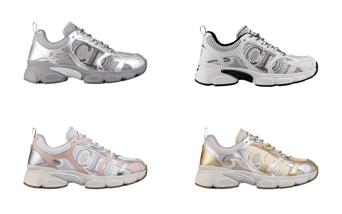 Dior Chrono運動鞋以網狀與皮革效果裁片,襯以裸色、白色、黑色、銀色或金色,彰顯異材質拼接、交錯的迷人特色。為向迪奧先生致敬,鞋側都裝飾有「CD」縮寫徽章,並在鞋舌綴飾上星星圖騰,與迪奧先生工作後返家步行於聖奧諾雷大道(Faubourg-Saint-Honoré)上所發現的幸運星相互呼應。雙色鞋帶巧妙點綴於此配件上,並且致敬著迪奧先生重視細節的精神。此迷人的新設計鞋款完美揉合運動裝束與Dior風格間平衡且完美的拿捏。