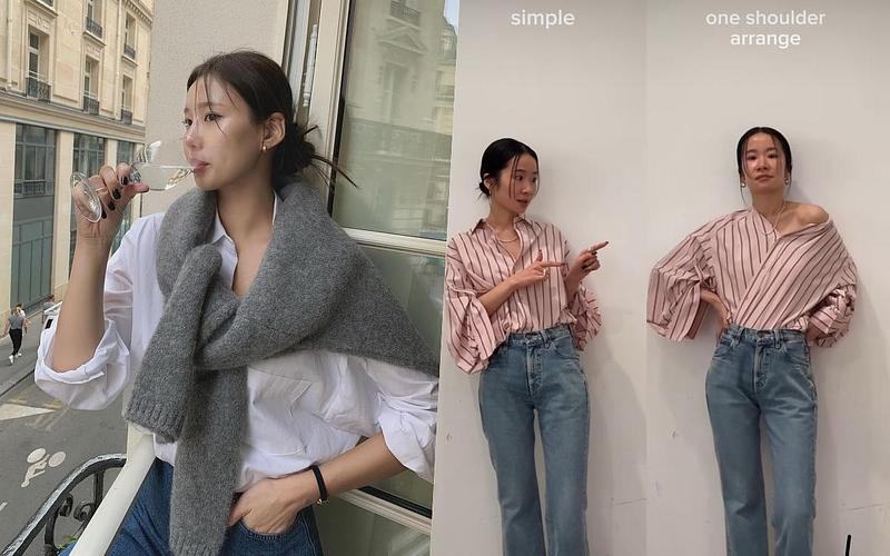 最後加碼一個襯衫的創意穿法,立刻將正式與休閒感兼具的襯衫換然一新,呈現女性摩登時髦的小性感魅力,不僅小露香肩,斜扣的襯衫形勢更是令人眼睛為之一亮!日常襯衫穿搭穿膩了,或衣櫃裡充滿襯衫的襯衫控,都一定要試試看這穿法!