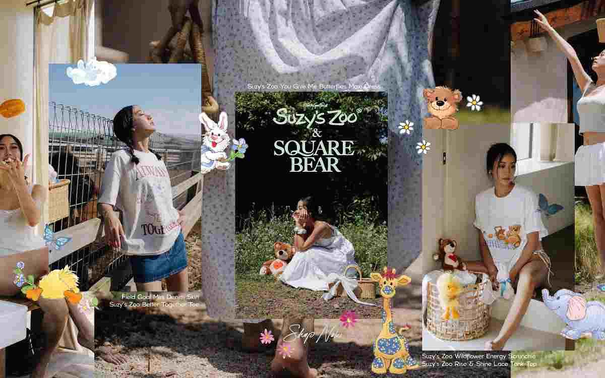 圖片來源:SQUAREBEAR 「Suzy's Zoo 蘇西的動物園」共有 5 個角色,分別是「Boof 布夫熊」、「Witzy 威奇鴨」、「Lulla 路菈兔」、「Ellie Funt 艾莉象」、「Patches 佩茲長頸鹿」,療癒的插畫風格,帶點大人的成熟可愛。SQUAREBEAR將最受歡迎的洋裝、居家系列、泳裝等經典穿搭單品,結合Suzy's Zoo角色的療癒模樣,打造多款所有人都能輕鬆駕馭的服飾。特別使用了大量Suzy's Zoo小碎花的元素,希望穿上都能擁有和花朵一樣「盡情綻放的精神」,一起#BloomWilder !除了服飾之外也設計了多樣生活小物,讓人全部想要一起收藏。
