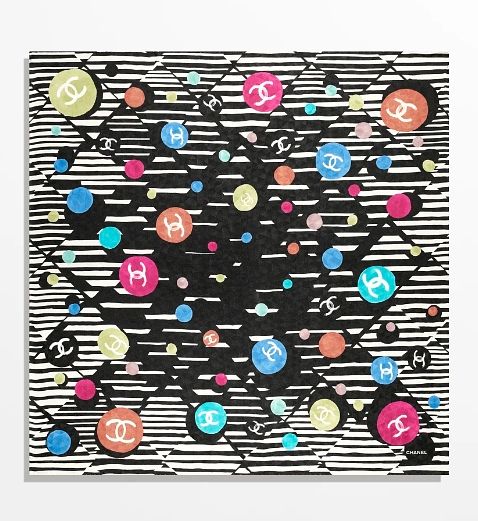 Chanel水彩印花黑白緹花真絲斜紋方巾,NT19,000。