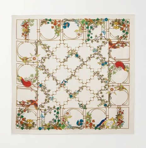 Gucci花鳥印花真絲斜紋方巾,約NT18,025。