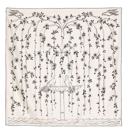 Lanvin花鳥印花淺米色真絲方巾,NT11,700。