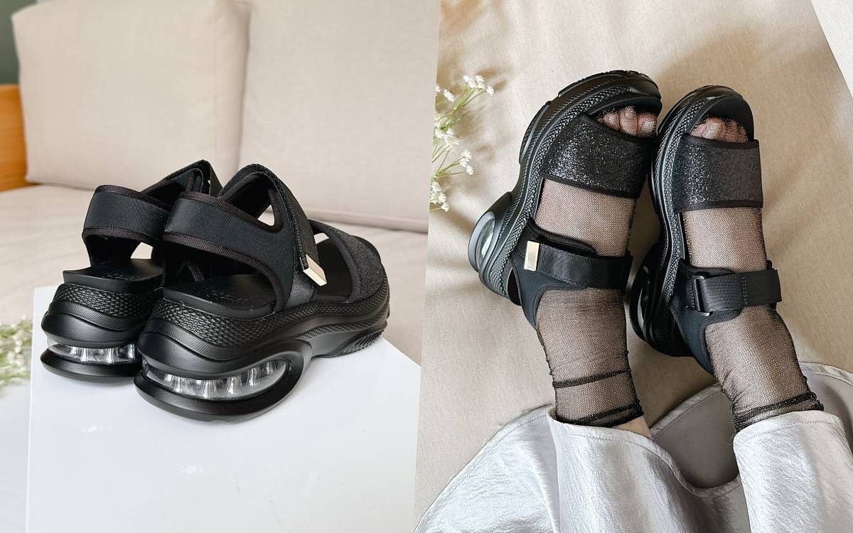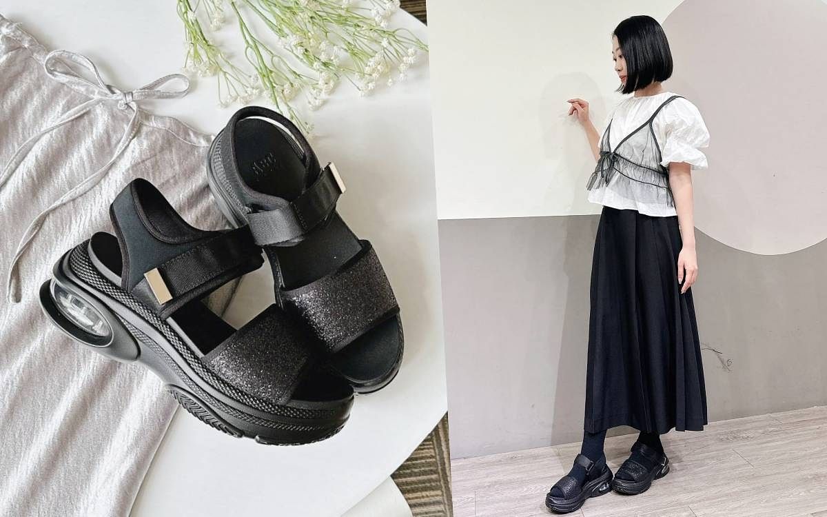 看似運動機能、復古中性的運動涼鞋在本季強勢回歸時尚圈!擔心太過陽剛就可選擇擁有細節設計的款式,鞋面特別以金蔥亮片點綴出女性柔媚感和特色,搭配修飾力滿分的厚底設計,後跟處更是加入了運動氣墊技術,不僅舒適度大幅提升,更將潮流運動風格與甜美時尚完美揉合,而必學的搭配小技巧絕對是穿上一雙長襪,再也不怕無法駕馭!穿著混搭百褶長裙、澎袖上衣和網紗造型背心,可愛中又帶點小個性的日系女孩穿搭風格秒達成!