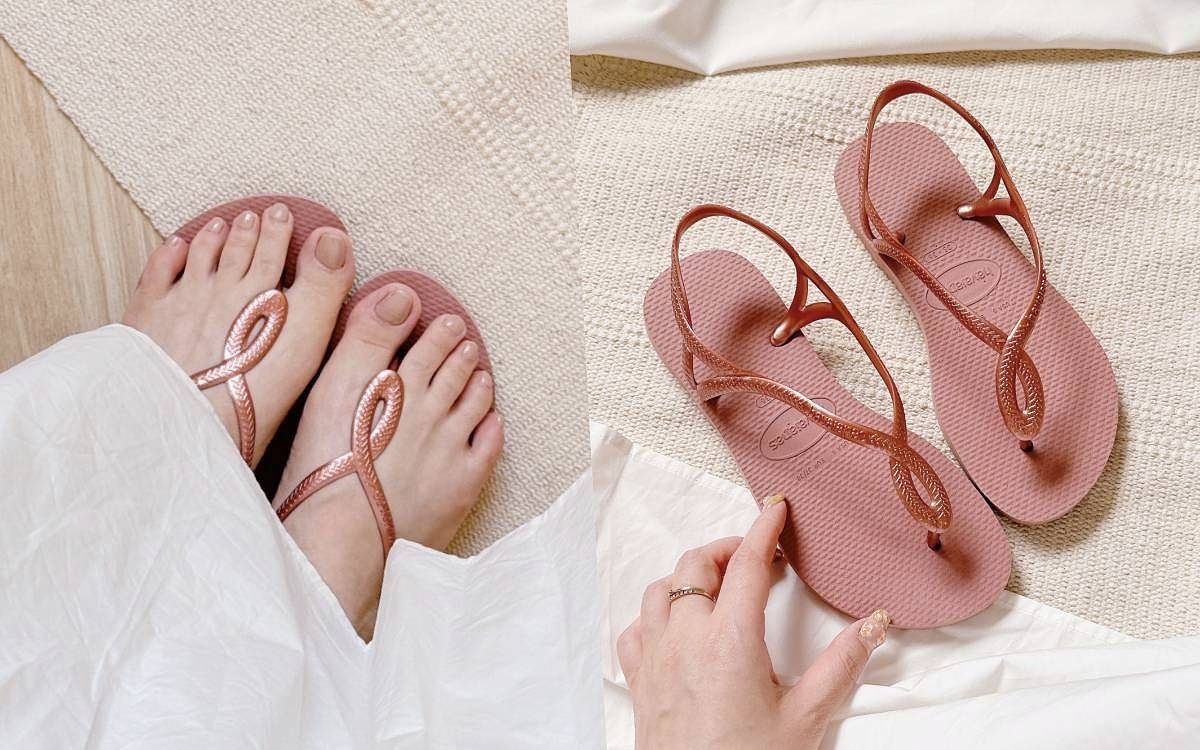 可說是人人都必備一雙的Havaianas涼拖鞋,在夏日裡無論是日常外出、海邊度假或造型穿搭都能零NG出場!這款LUNA涼鞋以金屬粉色Y字交織設計延伸了腳背的線條,同時又擁有了提亮、柔化膚色的視覺效果,女生穿起來真的是氣質滿分又充滿明亮俏麗的氛圍,尤其搭配上夏季度假洋裝或飄逸感長裙單品,輕鬆就能展現個人風格魅力,保證是鞋櫃裡實力和質感兼具的基本角色!