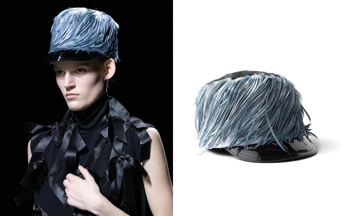 Prada 騎兵帽款飾以羽毛細節 NT$110,000