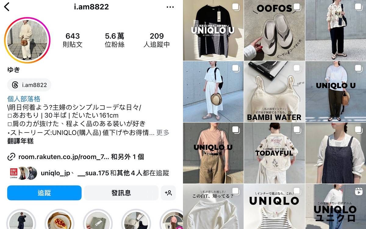 主要以ZARA、UNIQLO、GU等平價快時尚品牌的單品混搭,風格偏向日系大人感,可甜可鹹非常有層次和迷人品味,完全是為女孩們示範了怎麼以平價、基本的單品搭配出高級簡約感,甚至連配件也包含在內,絕對是很值得收藏的IG圖鑑!尤其滑IG時會有種在看日雜的錯覺,追蹤起來準沒錯!