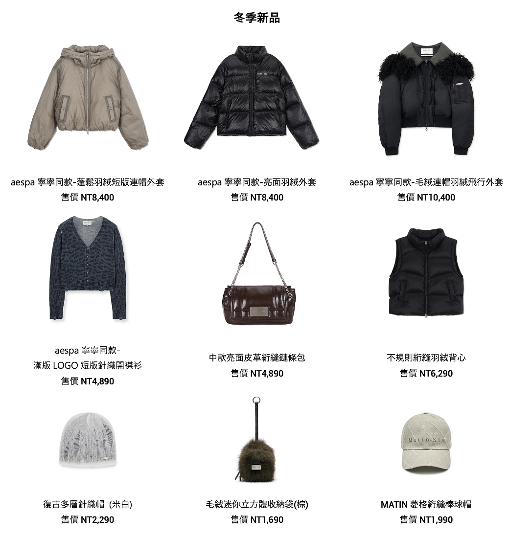 另外,韓國人氣女團 aespa 成員寧寧(NINGNING) 擔任 Matin Kim 本季形象代言人,以她冷靜自信的氣場詮釋 Matin Kim 女性所代表的現代態度——柔軟而堅定、簡約卻極具力量。在本季視覺大片中,寧寧以極簡黑白造型演繹冬季主題「SUBTLE SHIFT」,透過俐落線條與結構層次,展現品牌核心精神。從具份量感的短版羽絨外套、柔軟親膚的針織上衣,到寬鬆率性的丹寧長褲,每一件單品都在細節之間體現對「日常美學」的全新詮釋。