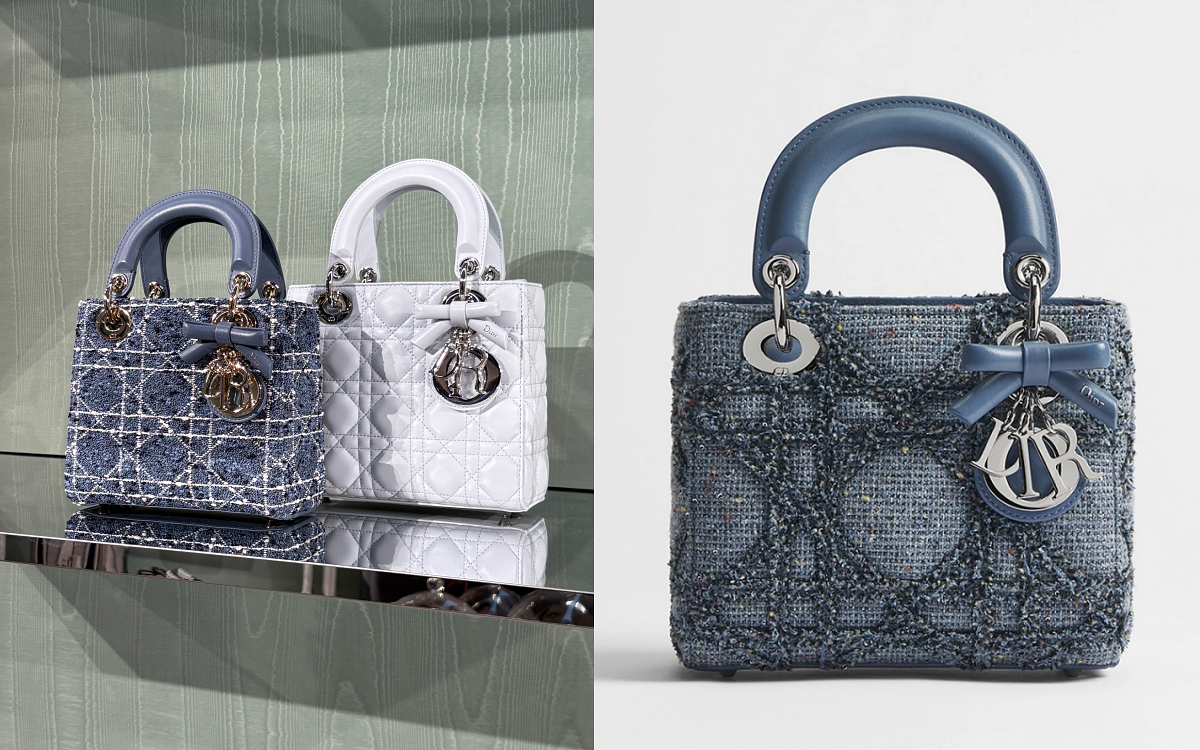 Lady Dior 天藍底拼色亮片刺繡 Cannage 籐格紋毛呢