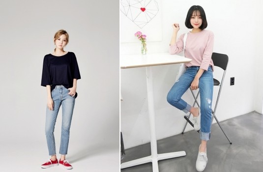 所有的褲型裡面就屬直筒褲最顯瘦!如果對自己腿部線條不夠有自信,千萬不要選擇過於貼腿的剪裁,會讓腿部缺點一一顯現,帶點寬鬆感的正直筒褲型修飾度很棒,能夠同時遮掩臀肉、也能拉長視覺,就算穿著平底拖鞋也能有較好比例,肉肉女孩在選擇丹寧褲款時一定要留意。