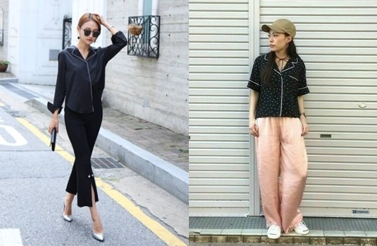 誰說穿上慵懶的睡衣就不能去正式的場合呢?下身搭配上今年超流行的開衩喇叭褲或是打摺西裝褲,腳踩上一雙細跟高跟鞋,搭配閃亮的飾品或充滿亮點的手拿包,幹練的氣勢馬上大大增添,去哪都能HOLD住現場。