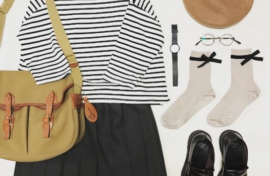 充滿日式氛圍的穿搭,比起簡約風的打扮來的更為有層次,丹寧褲、條紋上衣這些非常基本的單品,只要靠配件轉換就能讓衣著豐富不無聊,帽子跟襪款也是日系女孩一定要留意的穿著細節!