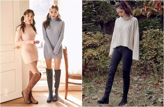 更吸睛又時尚的進階版就屬貼腿款式的過膝靴了,雖然較挑腿型穿著搭配,但卻能穿出女孩的曲線,因為需要呈現貼腿效果,質料上會偏向軟料的設計,也因此讓靴子穿上後會出現皺摺,成為了修飾腿型的小技巧,雖然貼腿,但皺摺卻能掩人耳目,模糊曲線的視覺焦點。貼腿的過膝靴最常看到搭配短裙、短褲,但千萬別以為它只有艷麗的一面,換上同色系的緊身褲,馬上營造出個性又酷率的女性風味,而且還能修飾小腿線條,瞬間就增高又顯瘦了!