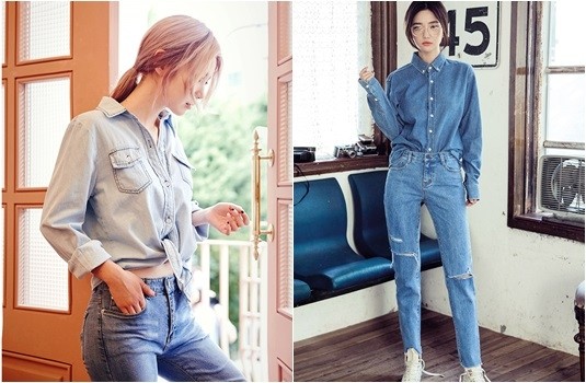 這是非常時髦的搭配法則呢!千萬不要以為丹寧搭配丹寧會非常奇怪,反而會呈現超時髦的率性感,將丹寧的特色完全展現出來。可以利用深淺不同去穿出差異,但卻都擁有丹寧的統一質感,也可以穿著同深淺的丹寧衣褲,利用剪裁或設計去創造變化,不同的穿法就能營造不同STYLE!淺色丹寧襯衫打結+緊身褲就有種歐美的性感,純色的襯衫全釦+割破直筒褲,營造出帶點文青感的BOY風~