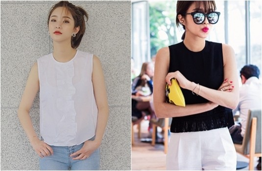 相信許多女孩跟V編一樣非常怕熱又十分會流汗,當夏季進入六月後的炎夏,通常連短袖都穿不住,只能換上無袖上衣好通風透氣,而這時因為害怕露太多肌膚而顯胖,就選擇常見的圓領合身背心來包住身上肉肉,覺得遮住就顯瘦還不會太熱…但該醒來了女孩!!這樣絕對超NG!圓領會讓上半身被加厚,也讓份量被大大加重,連體的肩帶與合身袖口更會加厚手臂蝴蝶袖,整個上身看起來就會很肥胖、魁武,令人想哭…