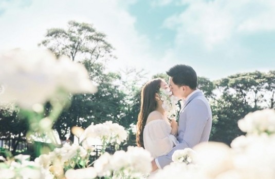 而婚紗照的部分多為棚內拍攝、或者是將場景拉到花園,著重在自然氛圍的呈現,不會有過於俗艷的場景、卻很能呈現兩個人之間自然又充滿愛的互動,當下傳遞出來的幸福氛圍才是韓系婚紗照的拍攝重點。