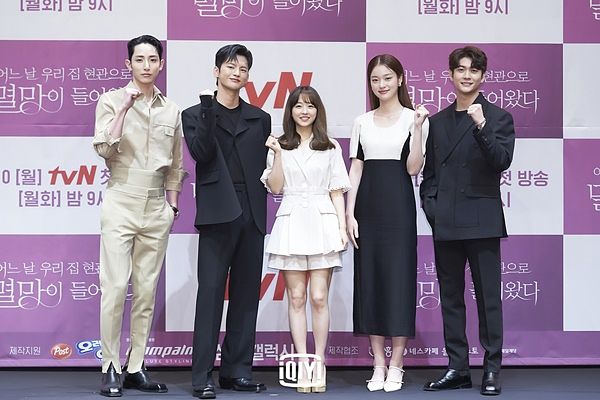 奇幻愛情劇《某一天滅亡來到我家門前》5/11(二)將於愛奇藝國際站獨家首播,由許久未回歸電視劇的男女主角徐仁國、朴寶英攜手李洙赫、姜泰伍、申度賢等年輕演員演出。出道時間均超過十年的朴寶英(15年)和徐仁國(12年)都相當期待這次的首度合作,經過長達六個月的拍攝雙方默契極佳,記者會上徐仁國回想第一次見到女方,雖然她個子很嬌小(158公分),但當下在他看起來卻很高大,藉以表達自己對朴寶英在演技上的敬佩,正式投入拍攝後,讚嘆對方每個瞬間都讓他學到很多事情,彼此像拼圖般配合得很好,並以「完美」兩字形容兩人的默契,對此朴寶英認同地回應:「我和徐仁國拍戲時,鮮少有意見分歧的時候」。