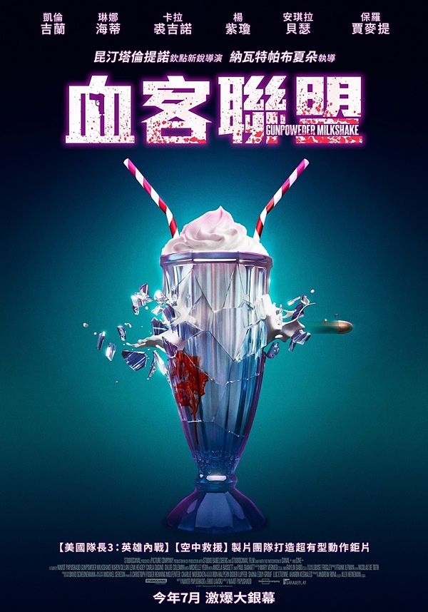 由《美國隊長3:英雄內戰》、《空中救援》製片團隊酷帥打造的超有型動作鉅片《血客聯盟》(英文片名:Gunpowder Milkshake)將於7月在台上映,車庫娛樂也於今日釋出中文海報和電影預告(預告連結: https://youtu.be/bro2VH7knwc ),本片由以色列新銳導演納瓦特帕布夏朵(Navot Papushado)執導,以《復仇者聯盟》系列中的「涅布拉」一角聞名的英國女星凱倫吉蘭(Karen Gillan)主演,片中她將化身頂尖殺手,為了保護無辜的小女孩,不惜與組織翻臉並和一眾「師奶級」殺手並肩作戰!本片師奶級殺手的卡司陣容亦十分堅強,包含:《加州大地震》卡拉裘吉諾(Carla Gugino)、《冰與火之歌:權力遊戲》琳娜海蒂(Lena Headey)、《星際爭霸戰:發現號》楊紫瓊、《黑豹》安琪拉貝瑟(Angela Bassett),頂級卡司加上預告中可見宛如《刺客聯盟》《金牌特務》般酷炫的槍戰動作場面設計,絕對是讓各位影迷耳目一新的全新風格動作片!