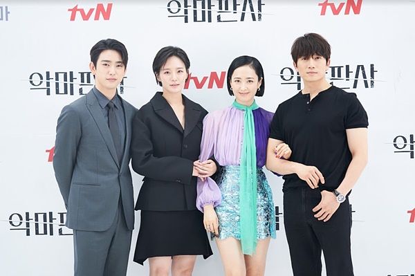 《惡魔法官》以虛構的烏托邦大韓民國為背景,劇情描述痛恨自私偽善人類的明星法官姜耀漢(池晟 飾),欲藉由全國人民都能參與的現場法庭真人秀傳達正義,但陪審法官金佳溫(朴珍榮 飾)卻對其真面目及行為抱持懷疑,兩人因而互相追逐,既想揭露彼此又想毀掉彼此的故事。劇組今天(1日)於首爾舉行新戲記者會,由導演崔政奎率領四位主演池晟、金玟廷、朴珍榮、朴珪瑛共同出席。由於本作是男女主角池晟、金玟廷繼14年前的熱門韓劇《New Heart》之後再度合作,再加上題材新穎而未演先受關注,兩人在被問到重逢的感想時,池晟表示很開心女方漂亮的大眼依舊美麗如昔,金玟廷則笑稱兩人都變老了但「老得很漂亮」,還透露不只自己連工作人員都覺得池晟變得比以前更帥了,沒想到兩人能藉由新作品再相會,讚嘆命運真的很神奇。