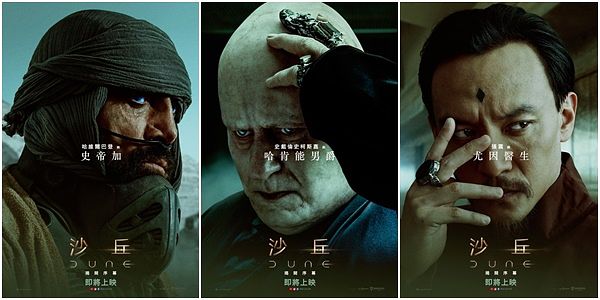 【沙丘】由導演丹尼維勒納夫執導,卡司眾星雲集。亞崔迪家族包含:提摩西夏勒梅(飾演 保羅亞崔迪)、蕾貝卡弗格森(飾演 潔西嘉女士)、奧斯卡伊薩克(飾演 雷托公爵)、傑森摩莫亞(飾演 鄧肯艾德侯)、喬許布洛林(飾演 葛尼哈萊克)、張震(飾演 尤因醫生);厄拉科斯的弗瑞曼人包含:辛蒂亞(飾演 荃妮)、哈維爾巴登(飾演 史帝加);哈肯能家族的史戴倫史柯斯嘉(飾演 哈肯能男爵)等。